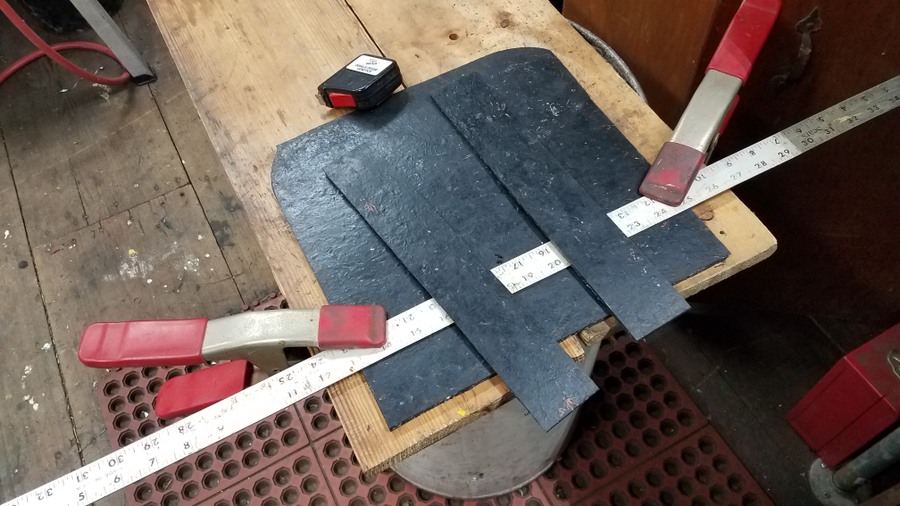 I added some small square plate for the U-bolts to draw against to help spread the clamping load over more area instead of just digging into the wood runners.  Next, I cut some strips of rubber from a mudflap to mount between the auger mate unit and the J&M cradle. I used 4 strips with double thickness or 8 total for better vibration isolation. This covered more area instead of relying on just the 4 pads that I inquired about in this thread.