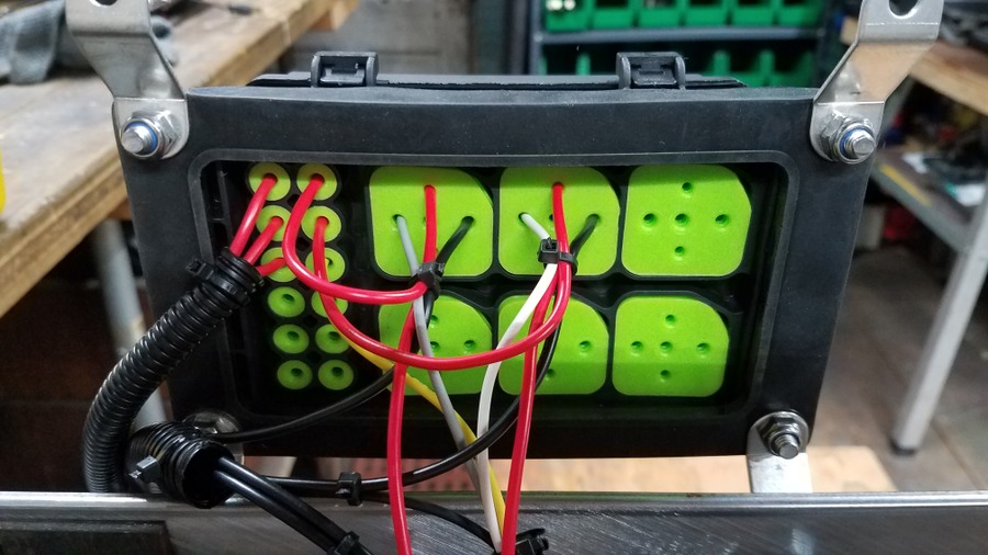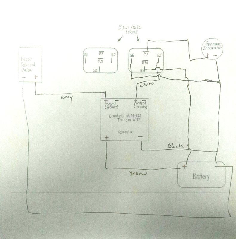 Here is the relay box I went with. https://www.amazon.com/gp/product/B07MR64XK1 Here are the relays. https://www.amazon.com/gp/product/B01KVZ2MU4 Now I got to thinking it would be nice to have indicator lights for the auger mate and the Enviropac. A couple LED clearance lamps and another fabricated plate made for a nice mounting. The auger running should be self evident but sometimes it's hard to hear the Enviropac running with the auger, planting tractor and auger mate all running. Since I'm doing one I may as well wire them both up to a indicator.   The wiring looks complicated but is really pretty straight forward, thanks to Matt & Ryan at Lundell for answering my questions and supplying connections on my crude drawing about how they would like to see it wired up using relays. They only showed using a relay for the Enviropac but I ended up wiring them both using relays to protect the remote control.