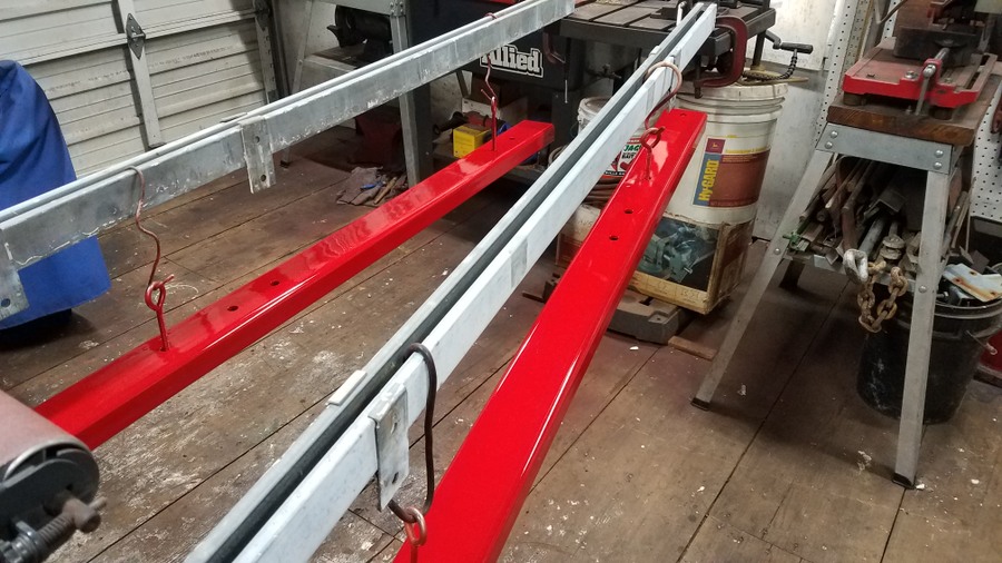 The augermate is pretty heavy. I think they list it at around 130# dry weight. Add in the cradle, the battery, fuel and oil, and 5 gallons of hydraulic oil and your probably getting up to the 200# mark. I really was not keen about drilling more holes in the wood runners especially mid span and felt 200# on the side of one runner was probably more twisting force than what I wanted to see. Earlier I had asked about the wooden beam runners and attaching to them to support the auger mate off to the side of the wagon. That post is here. https://talk.newagtalk.com/forums/thread-view.asp?tid=807692 I decided that with the room I had between the coupling pole and the wooden sills I would utilize some 2"x4"x1/4" wall rectangular tubing to span across underneath the wood runners and use square U-bolts to pull them up tight underneath. I bought some tubing locally and got started in measuring things out. I also could not find any square U-bolts locally that were a snug fit over the wooden runners so I found this place on line and ordered exactly what I wanted. They are a fine thread and grade 8 so I will never have to worry about them.